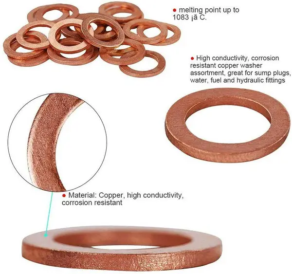 Мідні шайби можуть бути декількох стандартів, а саме DIN 7603 А і ГОСТ 19752-84.