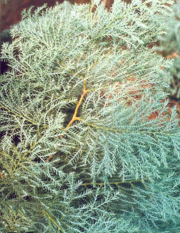 Хвоя. Голчаста, густа, моховидна, кучерява, зверху блакитно-зелена, знизу сріблясто-біла.