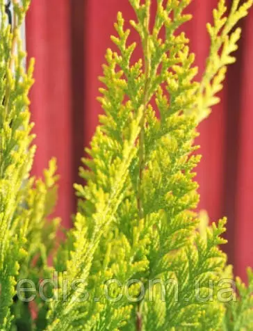Окрас хвои зависит от места посадки: почти золотистой на солнце и салатового цвета в полутени. Компактная форма куста. Подходит для живой изгороди.