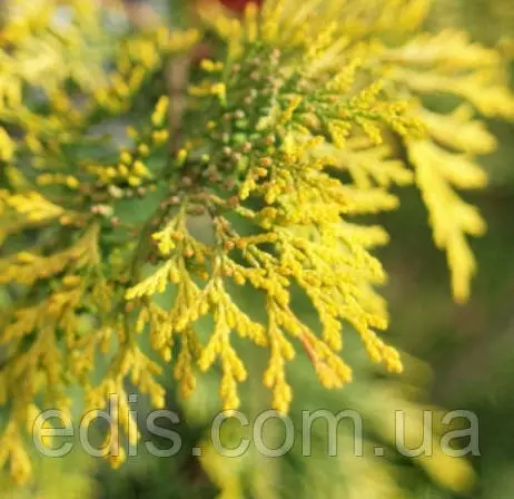 хвоя – плоские чешуйки золотисто-желтого цвета;