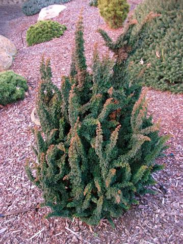 Опис сорту / переваги: Карликовий хвойний чагарник конусоподібної форми з ефектними зростаючими вгору пагонами, яскраво-зеленого кольору. Ця рослина стане перлиною Вашої домашньої колекції декоративних рослин.