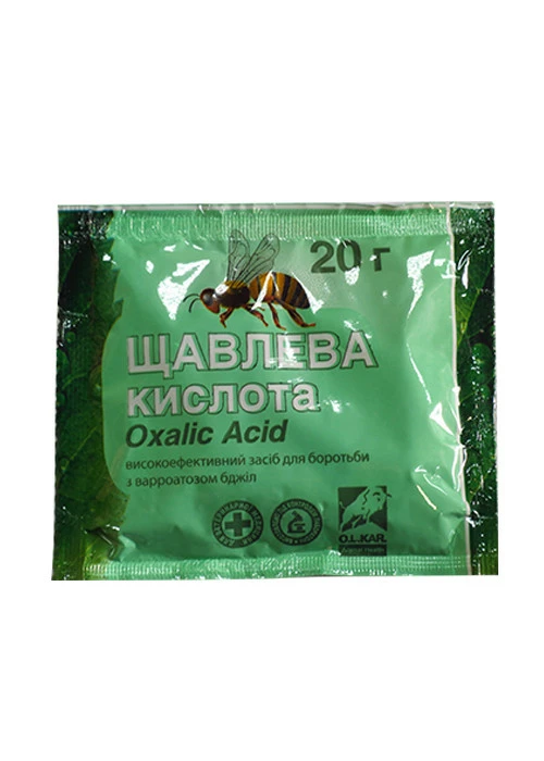 Для приготування 2% щавлевої кислоти 20 г препарату розчиняють в 1 л теплої кип’яченої води. Обробляють міжрамковий простір вуликів за допомогою обприскувача типу «Росинка» з відстані 25-30 см, під кутом 30-40˚ до рамок, з розрахунку 5-10 мл розчину на кожен міжрамковий простір. Обприскування проводять навесні триразово з інтервалом в 1 тиждень і восени, після збору меду, за температури повітря не нижче +15 °С.