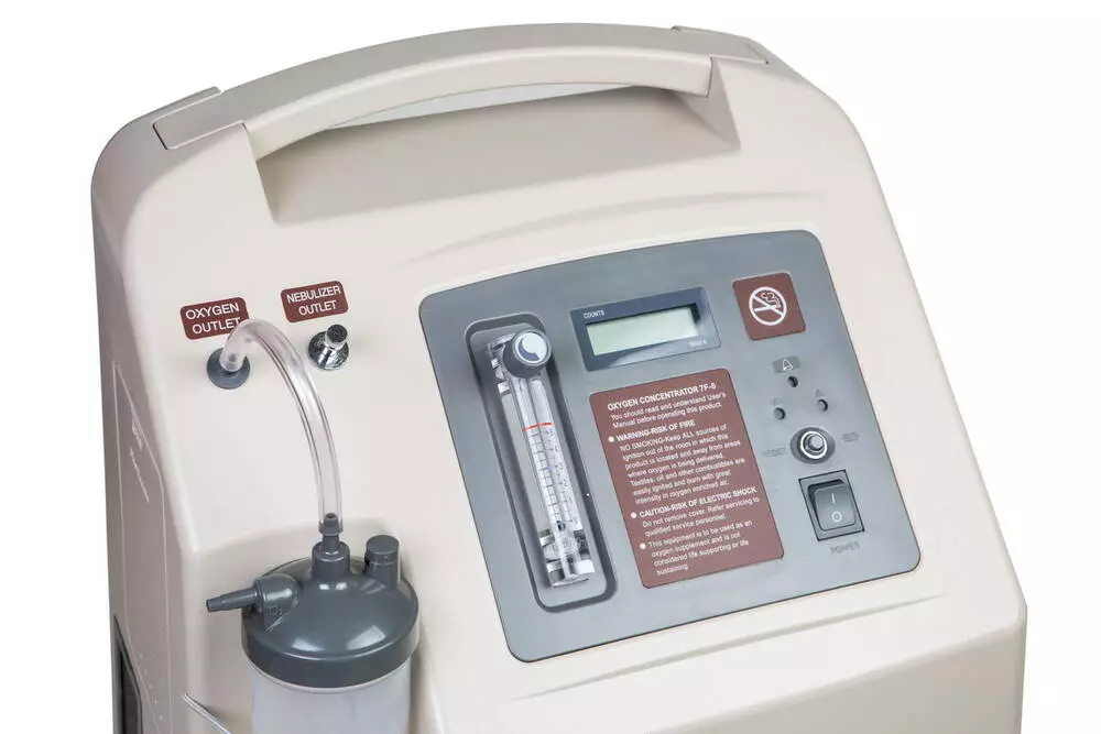 Клінічні дослідження показали, що кисневі концентратори терапевтично еквівалентні іншим типам систем подачі кисню. Навколишнє повітря через пиловий, а потім через бактерицидний фільтр надходить в безмасляний компресор, звідки під тиском потрапляє в колонки, заповнені цеолітом. З колонок очищене від азоту повітря потрапляє в накопичувач, проходить через регулятор потоку (ротаметр) у зволожувач, а потім через гнучку трубку з носовими канюлями надходить до пацієнта.