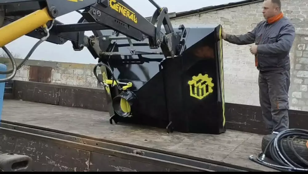 Існує два варіанти компоновки такого ковша: перший це гідравлічний, де затвор відчиняється за допомогою гідроциліндра. Другий варіант – механічний, для відкриття затвора на ньому, потрібно рукою повернути важіль. Перший варіант є зручнішим у використанні, але другий більше економний і не потребує обслуговування гідравліки, тож кожен господар може обрати варіант саме для себе.