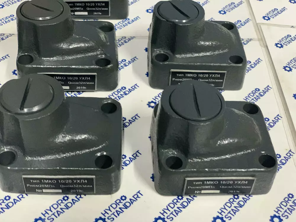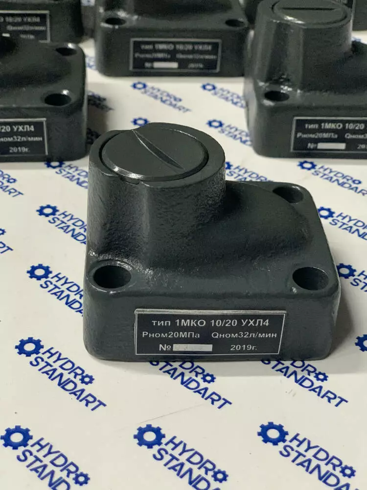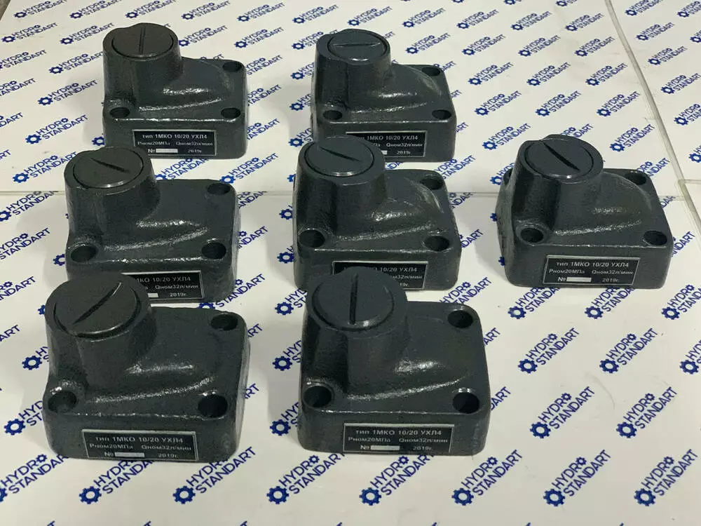Гідроклапан 1МКО стикового виготовлення виготовляється для забезпечення в об'ємних гідроприводах вільного потоку робочої рідини в одному напрямку та перекриття потоку у зворотному напрямку. Гідроклапани зворотні типу 1МКО працюють на мінеральних оливах номінальною тонкістю фільтрації не грубіше 25 мкм, кінематичною в'язкістю від 10 до 400 мм2.