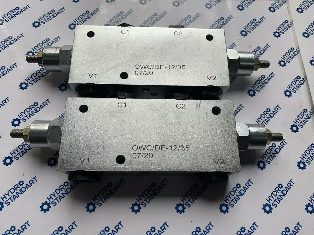 Високоякісний клапан гальмівний (підпірний, врівноважувальний, оверцентр) OWC/DE-12/35 Double overcentre Valves for centre Closed -Type A , двосторонньої дії пропускною здатністю 60 л/хв виробництва Болгарії.