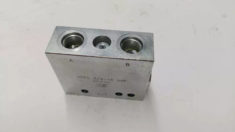 Клапан VDFS 3/4"- 16 UNF використовується на сітківках для роботи з маркером рядків з однобічними або двосторонніми циліндрами приводу маркерів сітківок. Клапан дає змогу автоматично складати (опускання) маркера сітківки під час подавання (зняття) тиску в порт P/T.