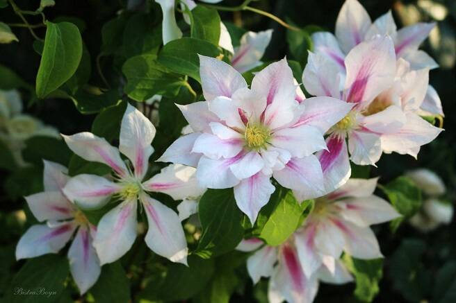 Клематис "Андромеда"- чагарникова багаторічна, високоросла, крупноквіткова і обільноцветущая ліана. Виростає до 4 м. Високі декоративні якості. Група обрізки 2. Перше цвітіння травень-червень, друга хвиля з липня і до заморозків.