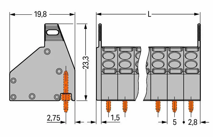 Клеми для друкованих плат 7 полюсів Wago 806 серія, 1,5; Крок контактів 5 мм; Push - in CAGE CLAMP Wago 806 серія.