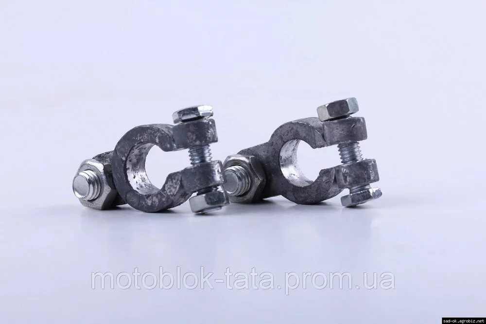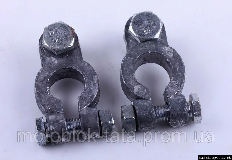 Клемы (пара + / -) - 180N-195N (комплект) подходят на дизельные двигатели мотоблоков и мототракторов мощностью 7/8/10/12 л.с. с водяным охлаждением. Материал: свинец. Размеры: ?12mm, ?14mm. Вес (пара): 66 гр.