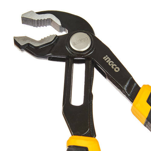 Кліщі переставні INGCO HPP68258 INDUSTRIAL довжиною 250 мм призначені для роботи з деталями круглого і шестигранного профілю. Цей інструмент обладнаний коробчатим шарніром з двома направляючими, що забезпечує високу стабільність та знижений люфт, дозволяючи досягати точної фіксації.