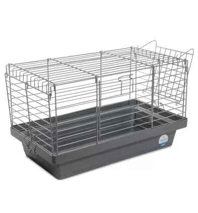 Клітка для декоративних кроликів дає можливість звірятку рухатися, а зовнішній відсік дозволяє тримати сіно і траву в зоні досяжності улюбленця і одночасно не заповнювати кормом внутрішній простір. Грати виготовлені зі сталевого дроту, пофарбованої безпечної порошковою фарбою. Кріплення на клітці, що з'єднують її з піддоном, і засувка на дверях міцні і надійні, звірятко не зможе відкрити їх самостійно.
