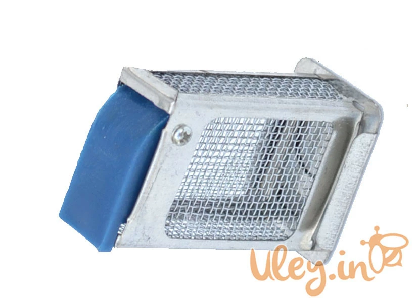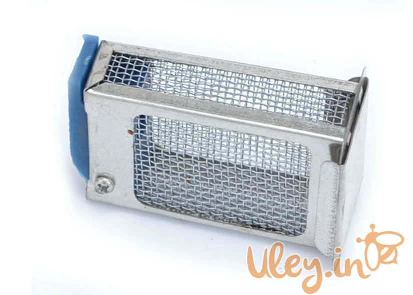 Клеточка выполнена из луженой сетки, прикрепленной к металлическому каркасу, верхней пластинки с отверстием для прохода пчел и подсадки матки, которое закрывают специальной задвижкой, и деревянной либо пластмассовой колодки с углублением для корма.