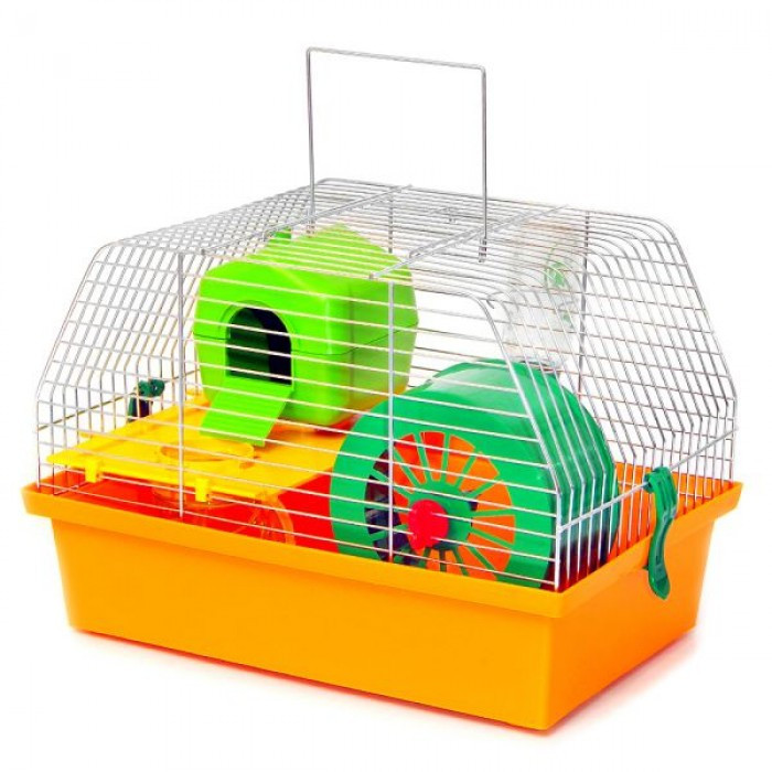 Укомплектована аксесуарами з високоякісної пластмаси: тунелі, полички, поїлка, будиночок, барабан.