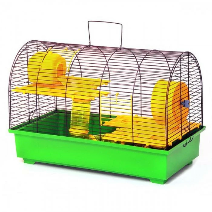 Велика клітка, буде комфортною домівкою для цілої зграї пухнастих бешкетників. Оснащена комплектом аксесуарів для розваг Ваших улюбленців: драбинка, тунелі з поличками, барабан, будиночок - все це можна комбінувати і міняти обстановку для руху і цікавого проведення часу її жителів. Наявність додаткових поверхів дає можливість хом'ячкам і щурики більше рухатися, при цьому відстань між ними абсолютно безпечна для тварин. Місце розташування дверей визначені таким чином, щоб забезпечити доступ до спритних її жителів. Піддон і аксесуари виготовлені з високоякісної пластмаси, а покриття металевої частини здійснюється з використанням сучасних європейських технологій.