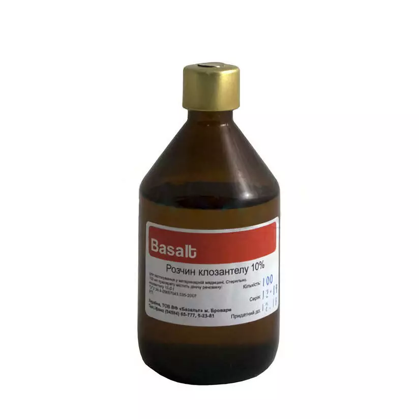 100 мл препарату містить: клозантел - 10,0 г, наповнювач - до 100 мл.