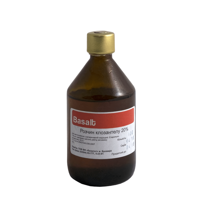 100 мл препарату містить: клозантел - 20,0 г, наповнювач - до 100 мл.