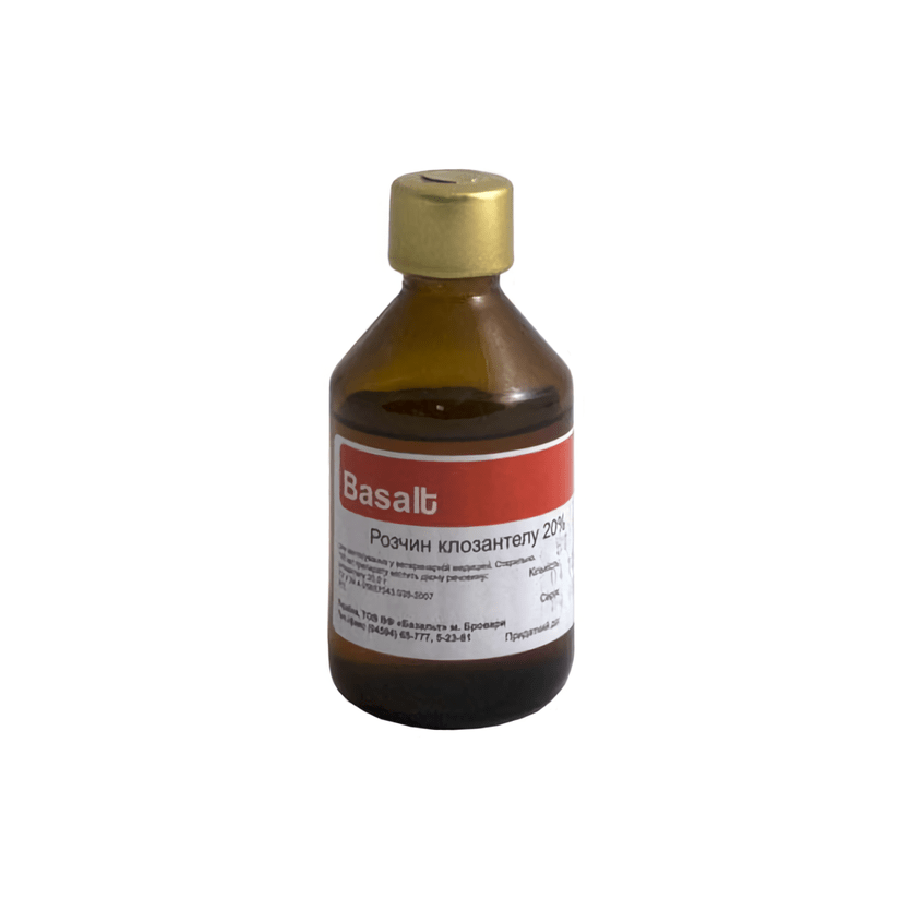 100 мл препарату містить: клозантел - 20,0 г, наповнювач - до 100 мл.