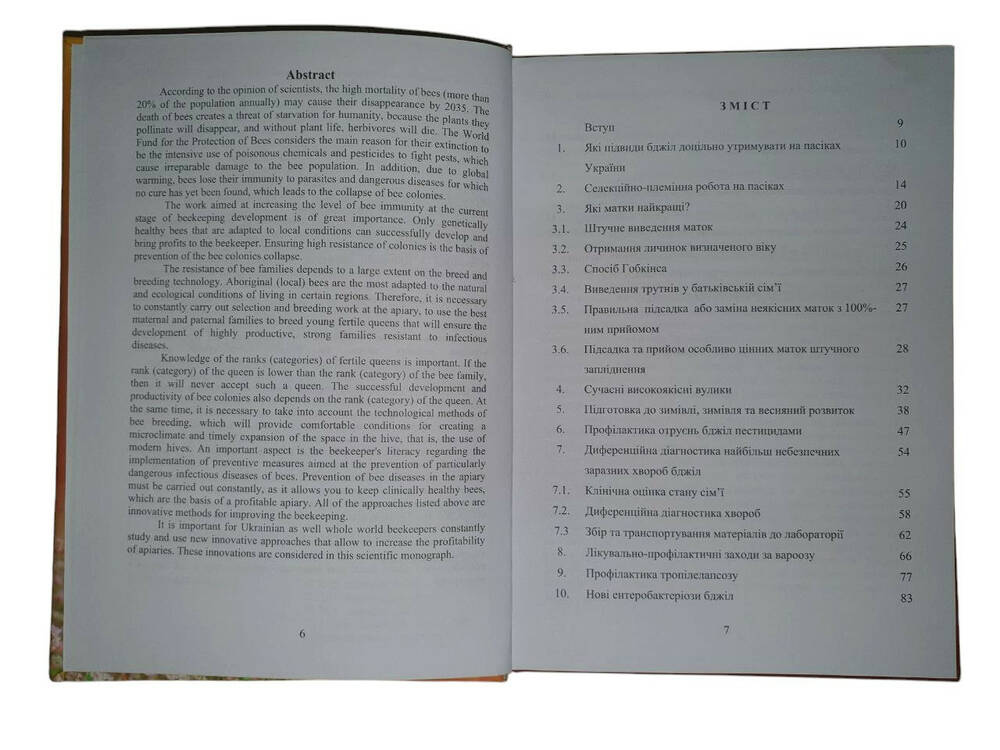 У науковій монографії викладені основи проведення селекційно-племінної роботи на пасіках, характеристика рангів маток, використання інноваційних вуликів, підготовки до зимівлі та способи зимівлі, весняного розвитку, диференційна діагностика найбільш небезпечних заразних хвороб бджіл. Розкрито сучасні способи профілактики та лікування вароозу, тропілолепсозу, клебсієльозу бджолиних сімей. Проаналізовано особливості ведення органічного бджільництва. Представлено матеріали особливостей проведення запилення ентомофільних рослин. Наукова монографія призначена для фахівців бджільництва, лікарів ветеринарної медицини, здобувачів освіти вищих навчальних закладів при вивченні спеціальностей 211 – «Ветеринарна медицина», 204 – «Технологія виробництва і переробки продукції тваринництва», 201 – «Агрономія».