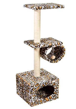 Когтеточка з будиночком, майданчиками на стовпчиках, барабаном, іграшкою-помпоном дуже сподобається молодим енергійним тваринам та стане знахідкою для господарів, які хочуть врятувати меблі, двері, фіранки і інші предмети інтер'єру від гострих кігтиків вихованця. Розважальний комплекс з будиночком дозволить спрямувати енергію котика в потрібне русло: з майданчиків можна стрибати, барабан стане місцем для відпочинку і гри з помпоном, стовпчики-когтеточки з обмоткою з сизалю дозволять задовольнити природні потреби в заточування кігтів.