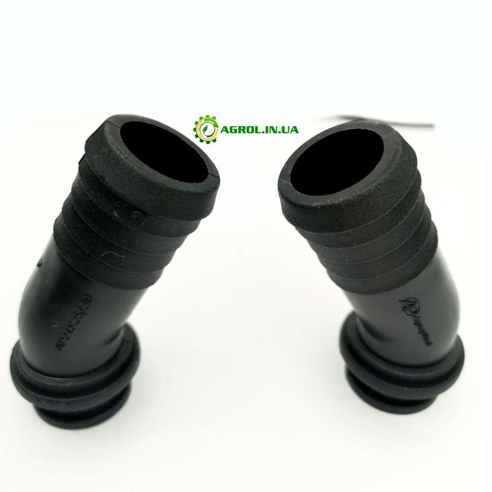 Колено випускное насоса. Устанавливается на насосы а также . На шланг диаметром 25мм, угол изгиба колена 30. Польского производителя Agroplast