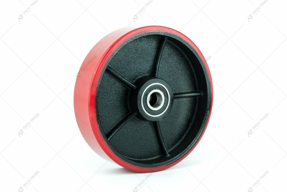 Колесо без кронштейна. Основа колеса-чавун, контактний шар-поліуретан. Діаметр 200 мм. Підшипник 180204.