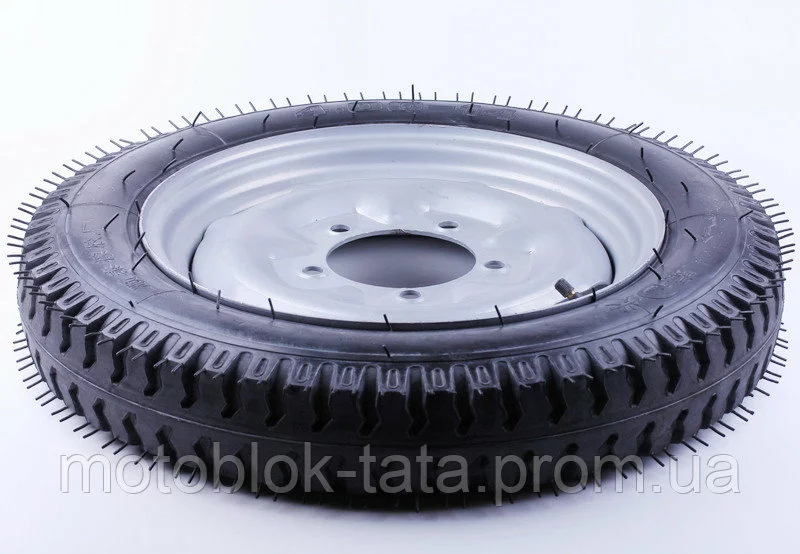 Колесо в сборе 4.00*14 (под 5 болтов) - мототрактор. Рисунок протектора - дорожный. Предназначено для мототракторов на перед.