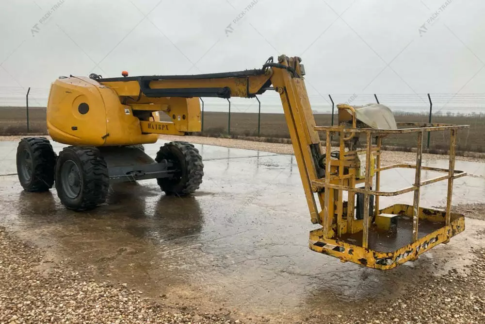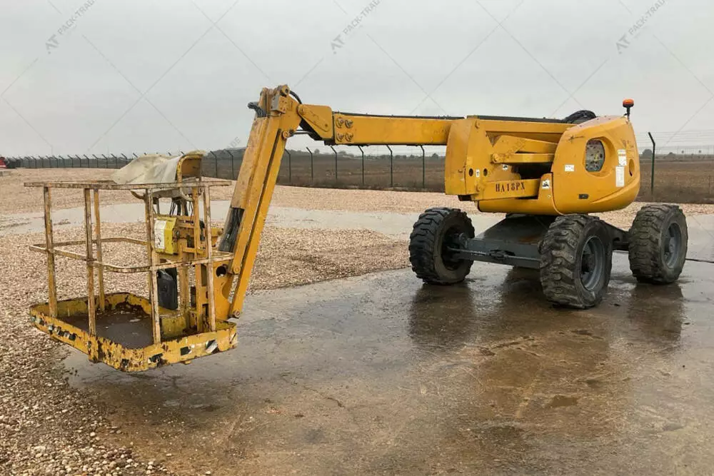 Колінчастий підіймач б/в Haulotte HA18PX, 2008 р/в. Напрацювання – 5806 м/год. Двигун — 31,2 кВт. Загальна висота — 2,35 м. Висота підйому — 18 м. Вантажопідйомність — 230 кг. Вага — 8050 кг. Розмір шин: 385/65-22,5.