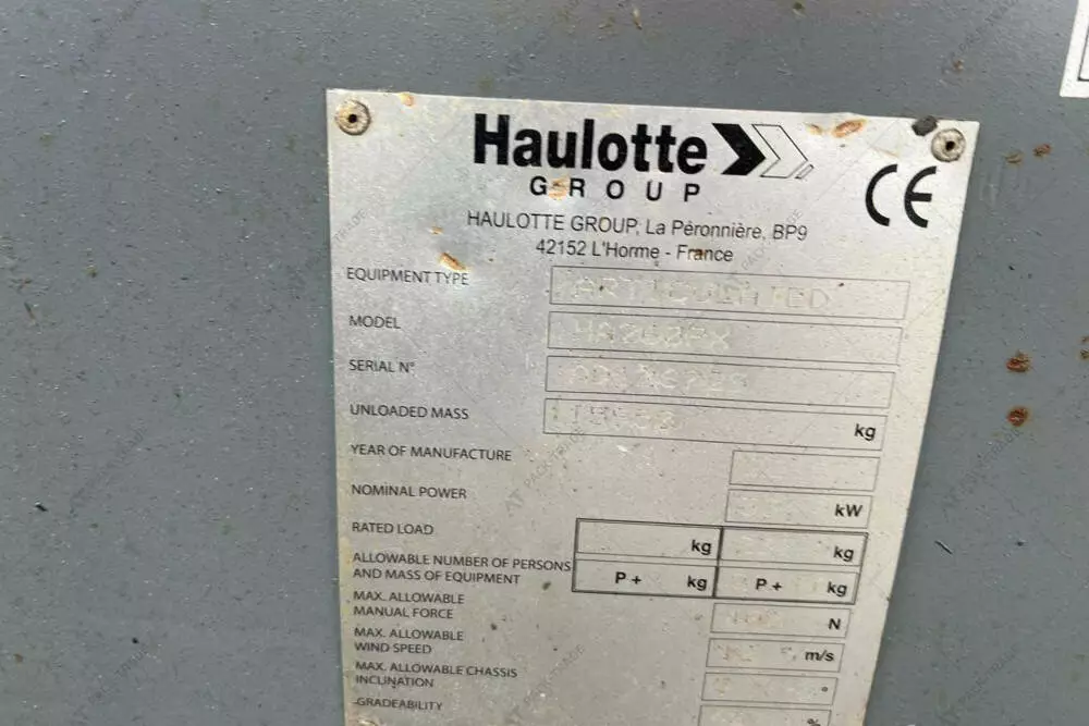 Колінчастий підіймач б/в Haulotte HA260PX, 2010 р/в., з напрацюванням 3723 м/год. Потужність двигуна — 42 кВт. Габаритна висота — 2,71 м. Висота підйому — 26 м. Вантажопідйомність — 230 кг. Вага — 15950 кг. Розмір шин: 385/65-22,5.