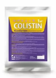 КОЛІСТИН Склад 1 г препарату містить діючу речовину колістину сульфат - 4 800 000 МО. Застосування Лікування телят (молодше 3 місяців), свиней та свійської птиці ( кури-бройлери, курчата, родинні пари, ремонтний молодняк, індики) при захворюваннях травного каналу (колібацильозах та сальмонельозах), що спричинені мікроорганізмами, чутливими до колістину. Дозування Перорально разом з питною водою або молоком протягом 3-5 діб у дозі: телята - 1 г препарату на 100 кг маси тіла двічі на добу; свині - 1 г препарату на 100 кг маси тіла двічі на добу або 200 г препарату на 1000 л питної води; свійська птиця (кури-бройлери, курчата, родинні пари, ремонтний молодняк, індики) - 100-200 г препарату на 1000 л питної води. Протипоказання Не застосовувати при підвищеній чутливості до колістину, а також тваринам з нирковою недостатністю. Не застосовувати курам-несучкам, яйця яких призначені для харчування людей. Застереження Забій тварин та птиці на м'ясо дозволяється через 1 (свійська птиця,свині) та 7 (телята) діб після останнього застосування препарату. Отримане, до зазначеного терміну, м'ясо та молоко утилізують або згодовують непродуктивним тваринам, залежно від висновку лікаря ветеринарної медицини. Зберігання Сухе, темне, недоступне для дітей місце при температурі від 15°С до 25°С. Термін придатності - 3 роки з дати виготовлення. Після розчинення у воді використати протягом 24 годин.