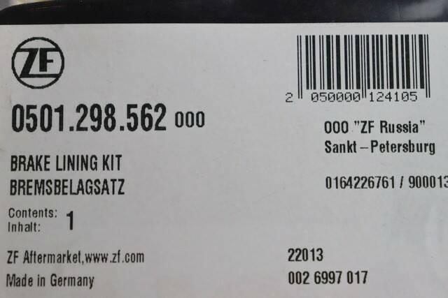 Колодки тормозные ZF 0501.298.562