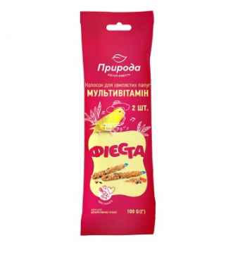 Ласощі для птиці Фієста. Колосок «Мультивітамін» ласощі для хвилястиг папуг 100 г, Природа