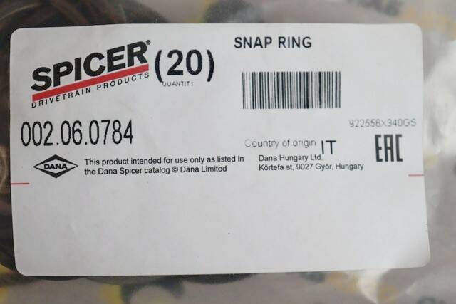 Кольцо стопорное DANA SPICER 002.06.0784