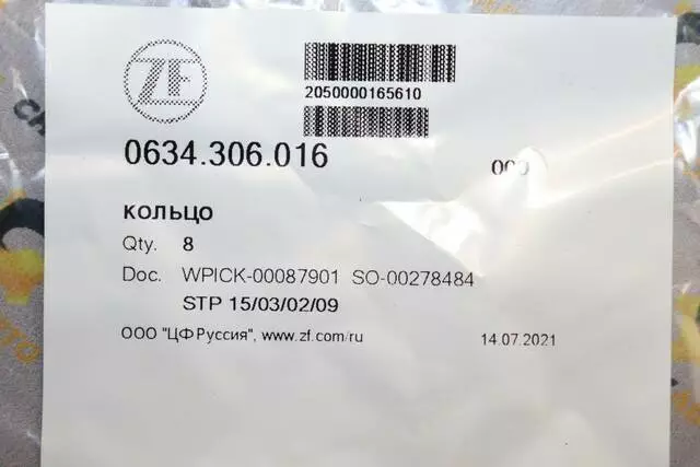Кольцо уплотнительное ZF 0634.306.016