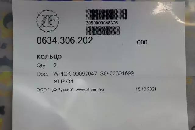 Кольцо уплотнительное ZF 0634.306.202