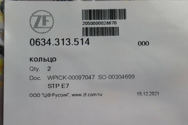Кольцо уплотнительное ZF 0634.313.514