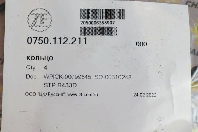 Кольцо уплотнительное ZF 0750.112.211