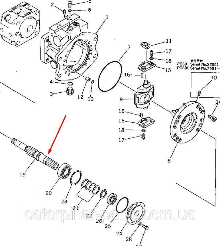 708-21-12711 Вал гідронасосу ведений для гідравліки Komatsu HPV35. Купити запчастини до спецтехніки Komatsu в Києві безпосередньо з нашого складу. Всі запчастини до мостів і КПП ми поставляємо безпосередньо від виробника. Ремонт мостів та трансмісії проводить наш сервісний центр з ремонту спецтехніки та двигунів (Київ, Україна).
