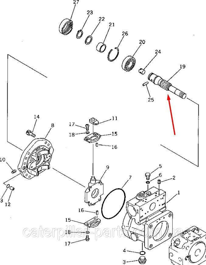 708-21-12720 Вал гідронасосу провідний для гідравліки Komatsu HPV35. Купити запчастини до спецтехніки Komatsu в Києві безпосередньо з нашого складу. Всі запчастини до мостів і КПП ми поставляємо безпосередньо від виробника. Ремонт мостів та трансмісії проводить наш сервісний центр з ремонту спецтехніки та двигунів (Київ, Україна).