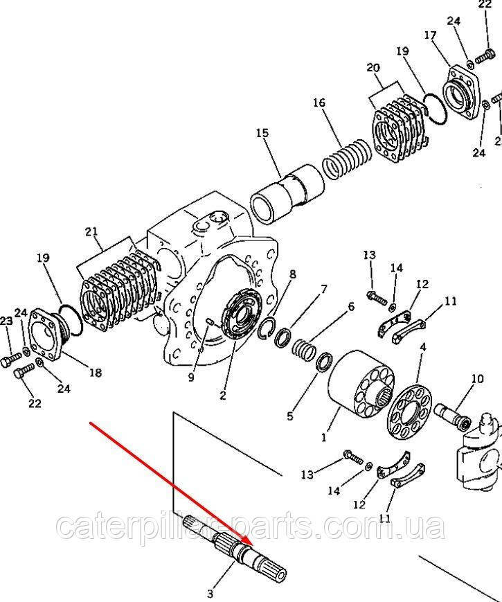 708-23-12710 Вал гідронасосу ведучий R для гідравліки Komatsu HPV55. Купити запчастини до спецтехніки Komatsu в Києві безпосередньо з нашого складу. Всі запчастини до мостів і КПП ми поставляємо безпосередньо від виробника. Ремонт мостів та трансмісії проводить наш сервісний центр з ремонту спецтехніки та двигунів (Київ, Україна).