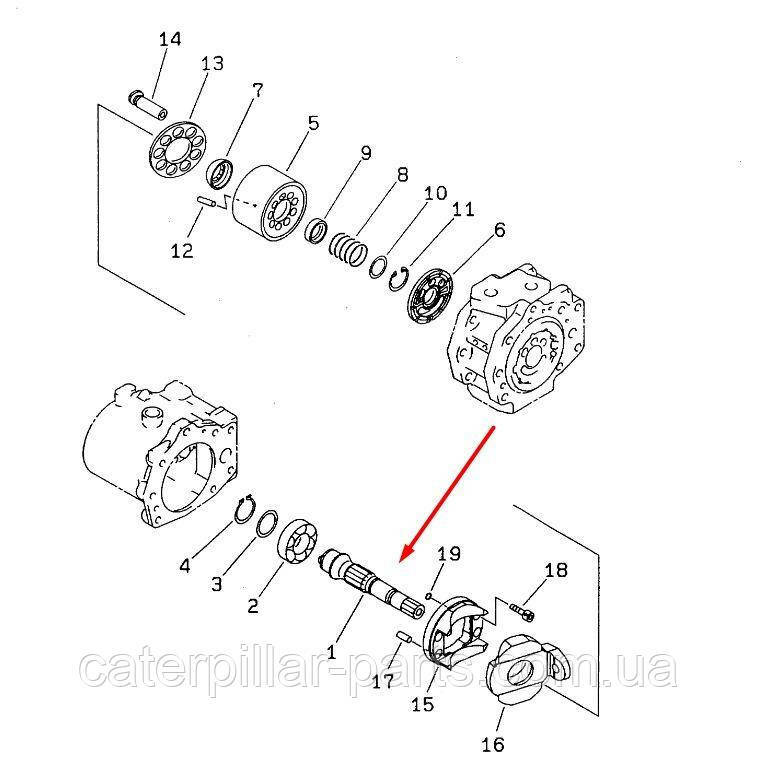 708-2L-32170 Вал приводу в аксіально-поршневий гідронасос екскаватора Komatsu PC300, PC300SC, PC340, PC350, PC380, PC400, PC400ST, PC450 (Комацу). Купити запчастини до спецтехніки Komatsu в Києві безпосередньо з нашого складу. Всі запчастини в мости та КПП ми поставляємо безпосередньо від виробника. Ремонт мостів та трансмісії проводить наш сервісний центр з ремонту спецтехніки та двигунів (Київ, Україна).
