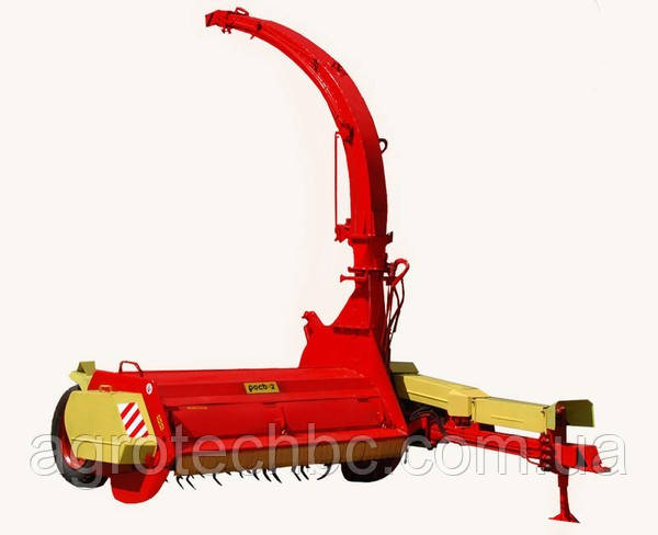 Комбайн роторний причіпний Рось-2 – універсальний сільськогосподарський агрегат. Одночасно скошує, перемелює і вивантажує в транспортний засіб перероблену кормову культуру. Конструкція робочих органів комбайна дозволяє максимально інтенсивно виробляти вивантаження рослинної маси. Забезпечуючи тим самим максимальну ефективність використання транспортного засобу.