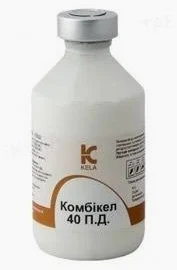 КФармакологічні свойстваПенициллин володіє високою антибіотичною активністю головним чином щодо грампозитивних мікроорганізмів (стрептококів, пневмококів, стафілококів, дифтерійних і сибіркових паличок, клостридій), грамнегативних коків, спірохет і деяких патогенних грибів. Резистентними до дії пеніциліну є грамнегативні мікроорганізми, рикетсії, віруси, найпростіші і майже всі гриби. До дії пеніциліну стійкі штами стафілокока, кишкової палички, синьогнійної палички та інших мікроорганізмів, що утворюють фермент пеніциліназу. Пеніцилін у формі прокаїну бензилпеніциліну створює спочатку високу концентрацію пеніциліну в тканинах. Дигідрострептоміцин сульфат пригнічує ріст і розвиток сальмонел, пастерелл, ешерихій, кокової мікрофлори. Не діє на анаеробні бактерії, гриби, віруси та найпростіші. Комбінація діючих речовин в препараті значно посилює їх антибактеріальну дію.Дози і спосіб примененияКОМБИ-КЕЛ 40 застосовують внутрішньом'язово або підшкірно для лікування інфекцій, викликаних чутливими до пеніциліну та (або) дигідрострептоміцин сульфату мікроорганізмами захворювання органів дихання (геморагічна септицемія, пастерельоз, бронхопневмонія, риніт, ларингіт), інфекції сечостатевої системи (пієлонефрит, нефрит, ендометрит), інфекцій шкіри і ран, перитоніту, маститів, менінгіт (стрептококовий), поліартритів, абсцесів, отитів, пики свиней правця, сибірської виразки, клостридиозов, некробактеріозу, актином икоза, пупкового сепсису, септицемії, актинобактериоза, післяопераційної профілактики, синдромі метрит-мастит-агалактія (ММА) у свиней, коней, великої рогатої худоби, собак, кішок у наступних дозах: Вид тварин і разова доза:Велика рогата худоба, коні 1 мл препарату на 10-20 кг маси тіла тварини один раз в день. Собаки, кішки 1 мл препарату на 10-20 кг маси тіла тварини один раз в день. Свині, вівці, кози 1 мл препарату на 10-20 кг маси тіла тварини один раз в день. Побічні действияПри введенні препарату іноді виявляються швидко розвиваються алергічні реакції. Лікування алергічних реакцій: глюкокортикостероїди іллі антигістаміни. Можливі нервові явища, нейром'язова блокада, блювання, гарячковий стан, аборти у свиней. Тривале застосування препарат може призводити до глухоти, вестібулотоксіческім і нефротоксичну симптомів. ПротивопоказанияНе допускається застосування препарату при індивідуальній підвищеній чутливості до одного з компонентів. Не застосовувати лактуючим тваринам, якщо молоко використовується для харчових цілей. Не применять внутривенно. Не применять животным с почечной недостаточностью. Особые указанияУбой животных на мясо не ранее, чем через 30 суток после последнего введения препарата. Мясо животных, вынужденно убитых до истечения указанного срока, может быть использовано на корм плотоядным или для производства мясокостной муки. Молоко запрещается использовать для пищевых целей в течение 4 дней после последнего введения препарата. До этого срока молоко используют в корм животным. Необходимо встряхивать флакон перед применением и использовать только сухой шприц. Не використовувати одночасно з іншими медикаментами в одному шприці. Умови храненияХранят з пересторогою (список Б) у захищеному від світла місці при температурі від 2 до 8С.Термін годности3 роки з дня виготовлення.Як купити Комбікел 40 Л