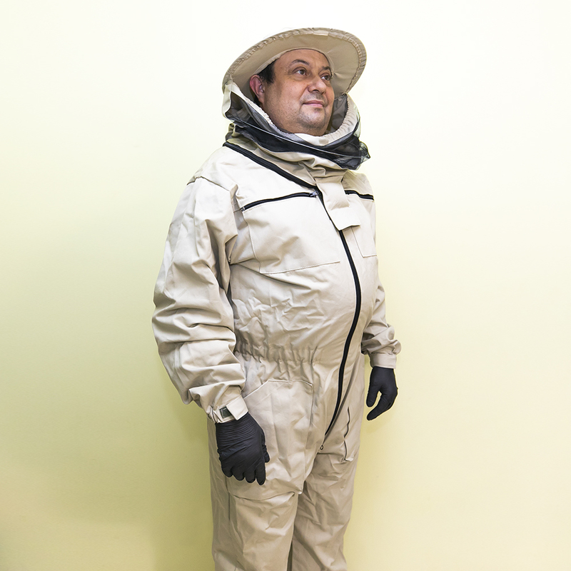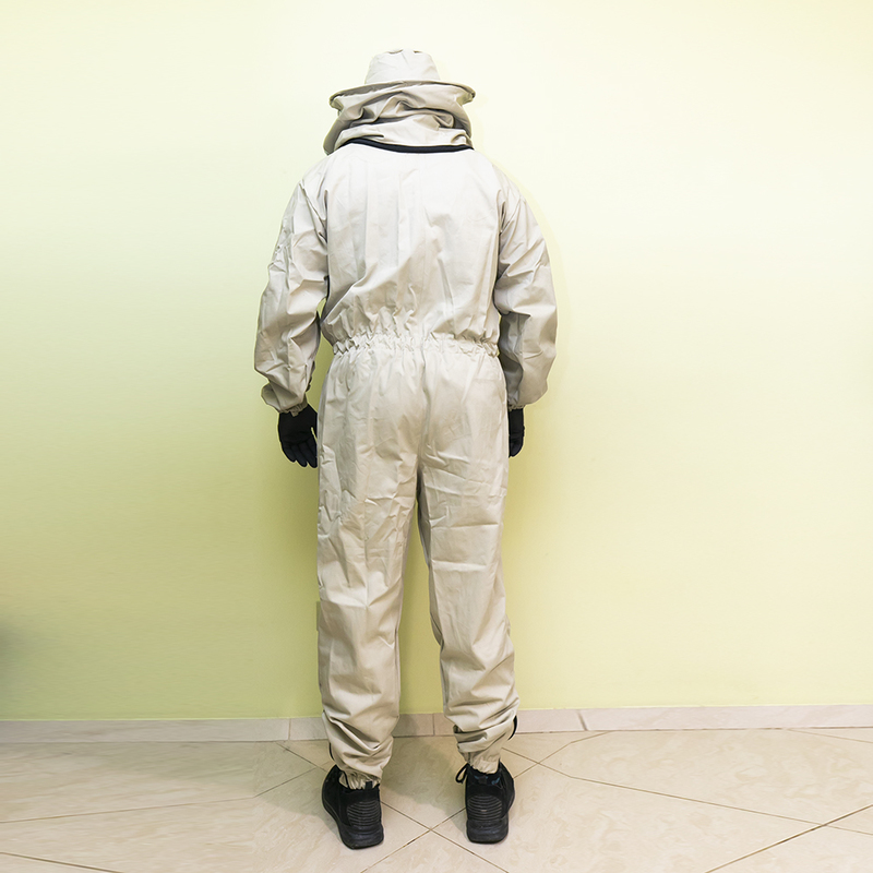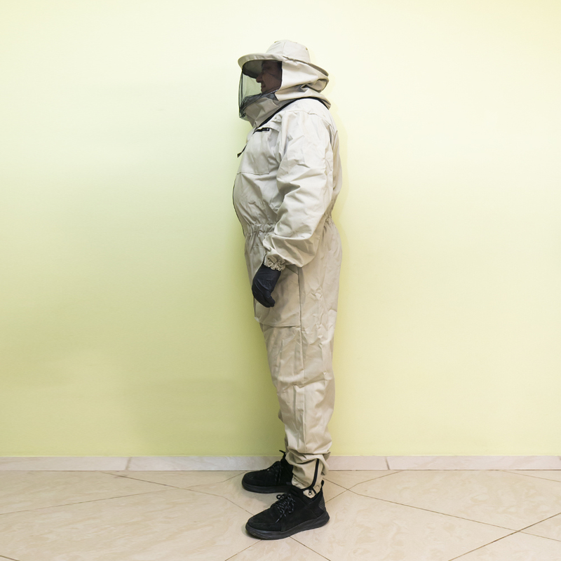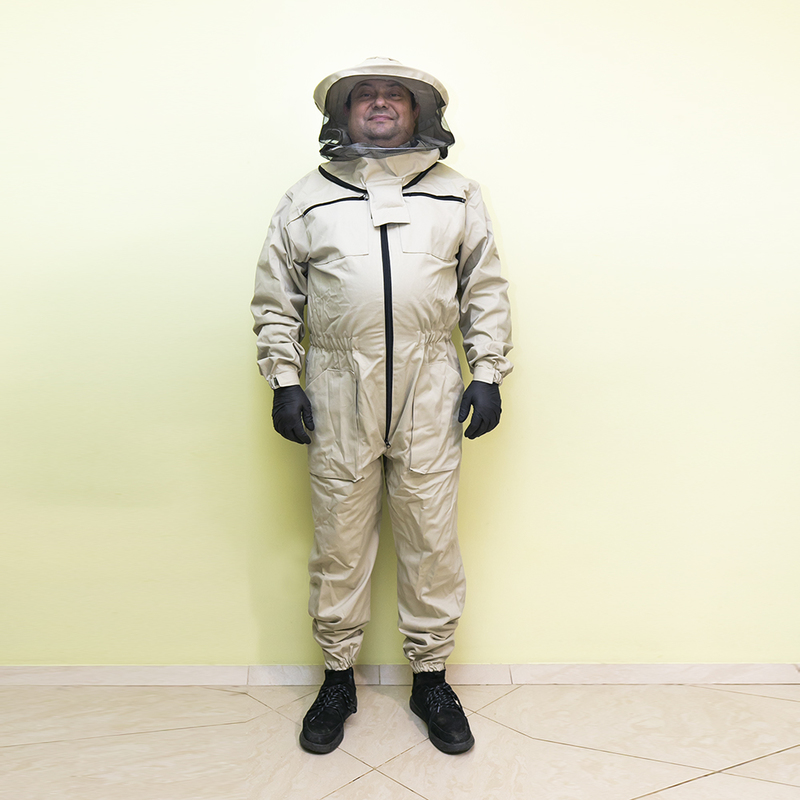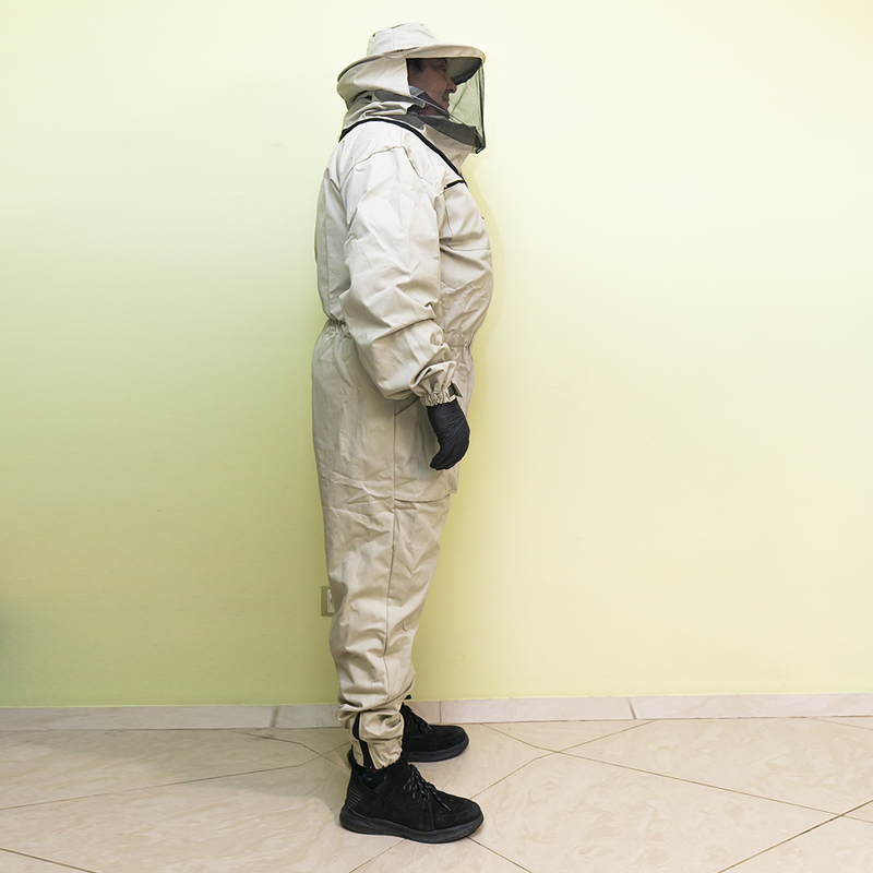 Досить довгий час бджолярам доводилося самостійно вирішувати питання амуніції і створювати власні моделі. Комбінезон ідеальний для роботи на пасіці в умовах будь-якої погоди. Комбінезон призначений для захисту всього тіла від укусів бджіл. Рукава і низ брюк оброблені гумкою, що перешкоджає проникненню бджіл під одяг. Для зручності на рукаві, куртці і брюках є кишені, який служать для носіння інвентарю бджоляра.  Щільна тканина надійно захищає тіло, зручна маска типу Євро не перешкоджає огляду, а класична кругла зручно слугує без додаткових головних уборів та фіксації.  Кроєм передбачені широкі і глибокі накладні кишені, куди під час роботи зручно складати невеликий пасічний інвентар. Комбінезон прослужить досить довго, оскільки пошитий з щільної тканини високої якості, не схильною до швидкого зносу. Виріб представлено у всіх розмірах. Варто враховувати, що є своя специфіка у догляді за бджільницькими костюмами. При пранні не можна застосовувати засоби, що мають сильний запах. Перед одяганням не буде зайвим гарненько провітрити одяг. У літній час костюм можна зберігати під навісом, захищеним від дощу, але добре вентильованим - так тканина не вбере сторонні запахи, до яких дуже чутливі бджоли.