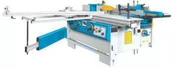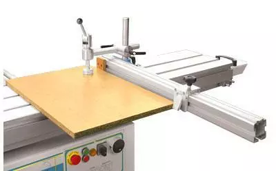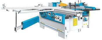 Форматный алюминиевый стол со закаленные стальные направляющие. Телескопическая линейка 1800 мм с двух поворачивающихся упоров. Линейка для параллельная резка с микрометрическая настройка. Наклонения диска до 45° со считывания по шкалу. Диаметр отверстия в столу ø260 mm с аспирационная патрубка под рабочего стола. Фрезерный шпиндель наклоняющийся сзади Предохранитель для фрезы с диаметром ø250 mm. Стол рейсмуса с ролики /CU 410/.