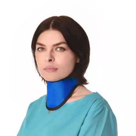 Комір рентгенозахисний одягається перед проведенням рентгенологічного дослідження і закріплюється на шиї за допомогою замка або липучки.