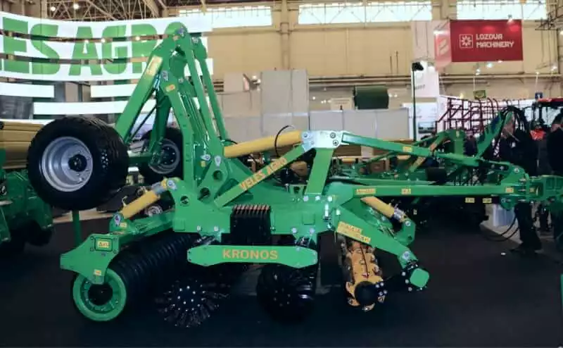 Компактні дискові борони серії KRONOS призначені для якісного поверхневого та передпосівного обробітку ґрунту. Тандемні дискові робочі органи закріплені на рамі через гумові амортизатори, що забезпечує розпушування ґрунту з незначними енергозатратами та знижує динамічні навантаження на підшипникові вузли. Диски встановлено на відстані 220 мм (110 мм по сліду) з кутом атаки 17 град, що гарантує повне підрізання рослинних решток та ґрунту. Зворотне ущільнення поверхні та розрихленого шару ґрунту виконується котком. Механізм копіювання поверхні рельєфу поля опирається на коток, що гарантує стабільність дотримання заданої глибини обробітку по всій ширині захвату агрегату. Виконання поверхневого обробітку ґрунту компактною дисковою бороною забезпечує збереження вологи у верхніх шарах, захищає ґрунт від непродуктивних її втрат; створює сприятливе ґрунтове середовище для проростання насіння бур’янів та розвитку мікрофлори; прискорює процеси перегнивання рослинних решток та збереження родючості ґрунту. При лущенні стерні зернових за один прохід агрегата забезпечується стан ґрунту, що відповідає вимогам до цієї операції в найсучасніших агротехнологіях. Стабільність та рівномірність дна обробітку дозволяє рекомендувати KRONOS і для виконання передпосівної культивації.