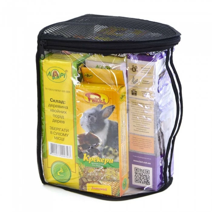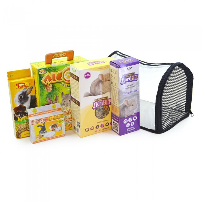Комплект №3 Переноска для шиншилСклад: Лісок-3 (1,5 кг) -1штЛоривит + корм для шиншил 800г -1шткрекер Лоривит для середніх гризунів (фруктовий) -1уп крекер Р овочевий-1уп лоривит для гризунів 40г - 1шт