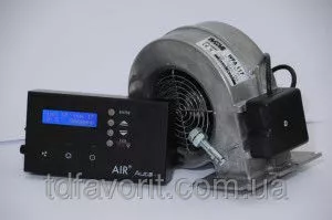 Контроллер твёрдотопливного котла AIR AUTO + в комплекте с польским вентилятором DM-120 (электромотор Ziehl-Abegg - Германия) позволяет добиться высокого КПД вашого котла, регулируя подачу воздуха в камеру сгорания в строго определённых количествах. Неизменным свойством такого комплекта является проверенное и признанное сервисантами качество, простое и удобное управление