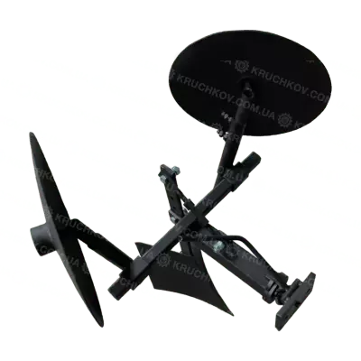 Комплект для посадки картофеля универсальный представляет собой поворотный механизм, на котором установлена поперечная балка. Поперечная балка имеет крепление для установки сошника и две направляющих со втулками для установки дисковых окучников. Данное устройство подходит для подключения как к мотоблокам с двигателем воздушного охлаждения, так и к мотоблокам с двигателем водяного охлаждения.